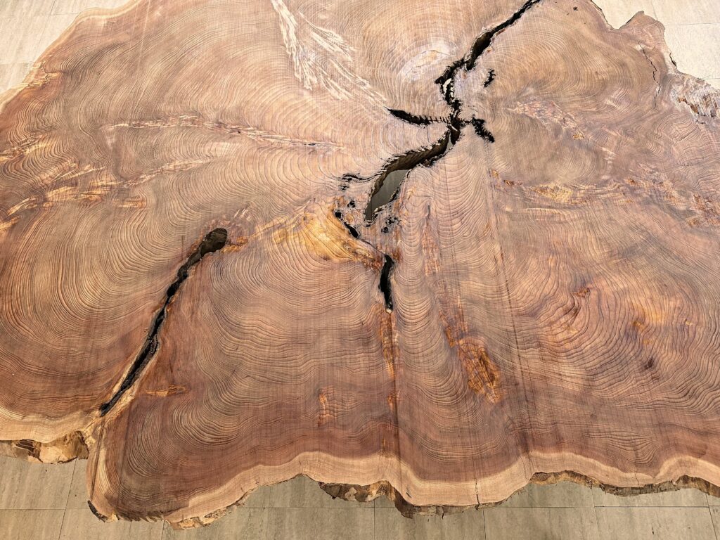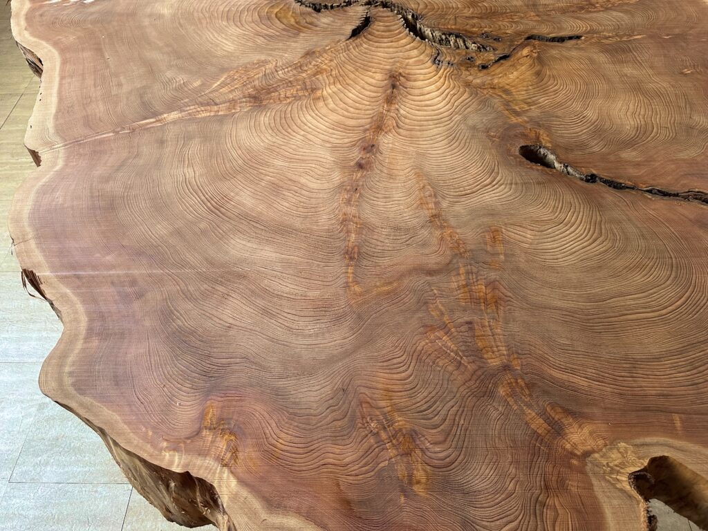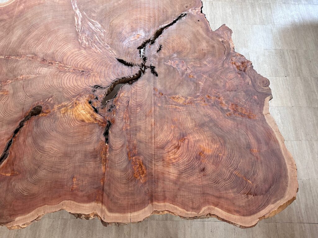 人工的にカットされた部分もなく、自然のままに姿形が残っているのも貴重です。木表の直径が217 × 243cmという巨大な屋久杉を囲めるのも貴重なことだと思います。
